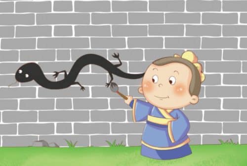 The figurative meaning of this idiom is to overdo something, add unnecessary details, or ruin something by trying to improve it. The idiom originated during The Warring States period, when China was decentralized into seven separate states, which were constantly at war with each other. The story goes that one day a group of men found a pot of wine, but there was not enough for everyone to share. They decided to have a competition, and the winner would be given the wine. The competition would be the first one to draw a snake on the ground. They all began, but soon one of the men was finished well before the others were. The man saw that the others were still working, so he decided he wanted to show off. He added more details to the snake, and eventually he added feet. Before he was finished with the addition, another man finished and claimed the pot of wine. When the man who had finished first confronted the other one, the second man said “snakes don’t have feet, so you didn’t draw a snake”. When the first man tried to add unnecessary details, he went too far, and lost his reward.